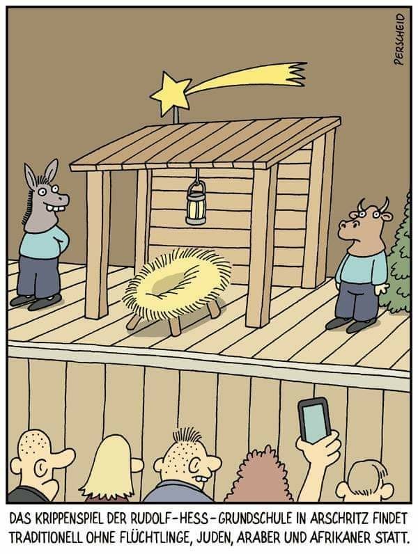 A church member at Urban Village Church sent this one along, where Mary, Joseph and Jesus are gone and replaced with a sign that reads: “Due to ICE activity in our community, the Holy Family is in hiding.”