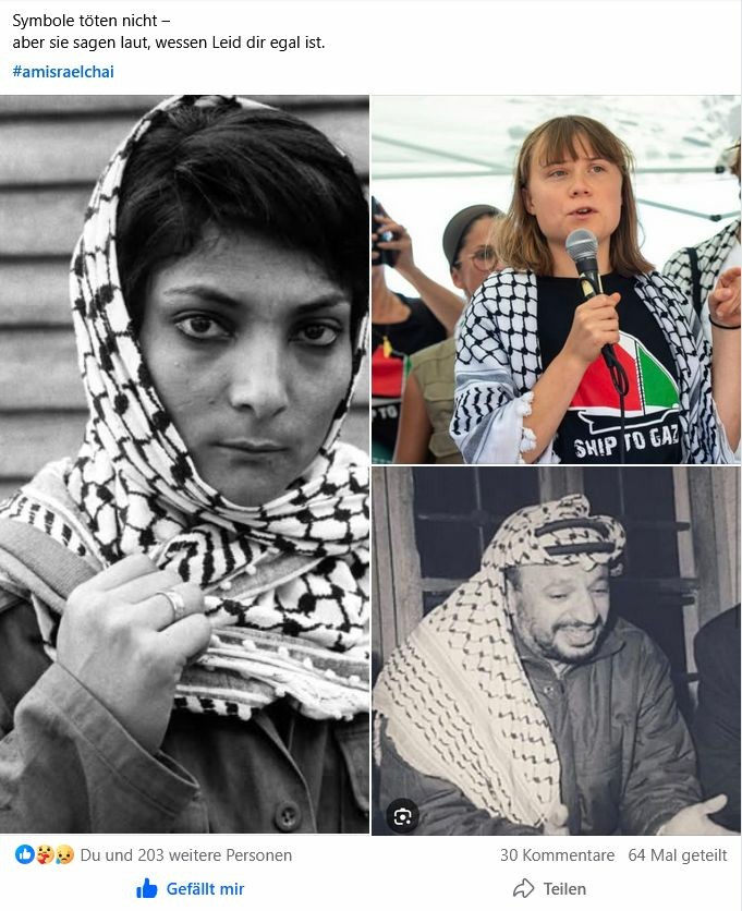 Aber wenn du ein Symbol trägst, das weltweit mit der Ablehnung der Existenz Israels verbunden ist, dann trägst du auch diese Botschaft weiter – ob du willst oder nicht.