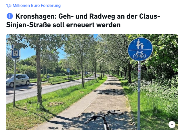 Wie schön, dass es nach dem #Purevento-Irrsinn auf Radwegen in #Kiel (Ihr erinnert Euch, diese sinnlosen Luftfilter gegen zu viel #Auto-Abgase, die aber nicht den #Autoverkehr einschränkten sondern als Slalom-Hindernis auf die 🚲 gestellt wurden) eine neue Folge gibt, mit der es #derechtenorden #SH mal wieder in die bundesweiten Medien schafft 🙃 ! Dieses Mal: Hätte die Gemeinde #Kronshagen doch wen gefragt, der sich damit auskennt! Oder das Kleingedruckte gelesen. Denn klar soll ein neuer Radweg bitteschön auch der Mindestbreite entsprechen (dass sich die locals erstmal über eine Verbesserung des Status-quo freuen, ist ja kein Grund, es nicht gleich richtig zu machen). Es würde ja auch niemand eine kombinierte Auto-Fußgängerstraße bauen. Und wenn wir schon dabei sind: Als Belag für einen Radweg sind die Pflastersteine gänzlich ungeeignet - das zeugt von völliger Inkompetenz. #Dankefürnichts #Provinz #SchleswigHolstein #autokorrektur #Autowahn #Verkehrswende