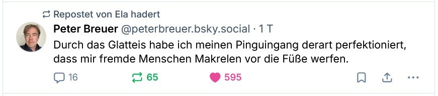 Schwarwel @schwarwel@stranger.social · activity timestamp 3 days ago Oldie but Goldie #glatteis #fortbewegung #Pinguin #schwarwel Read more Read less Translate alt Sorry, no caption provided by author Sorry, no caption provided by author Reply 1 Boost Quote You cannot quote this post Like More actions Copy link Flag this post Block