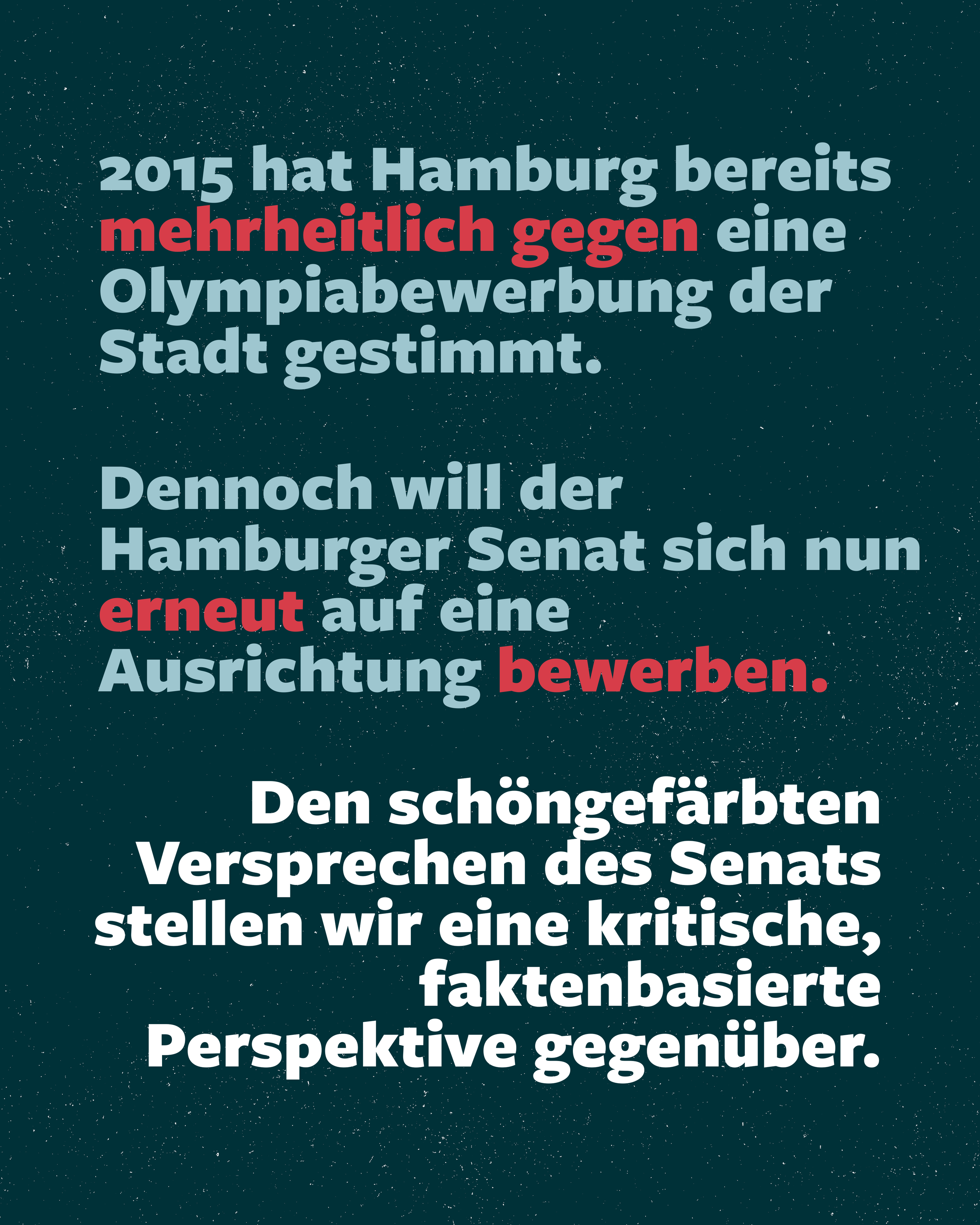 Jeder Euro, der in Olympia fließt, fehlt in unserer Stadt. Zum Beispiel bei Bildung, Mobilität, Wohnungsbau und sozialen Einrichtungen.