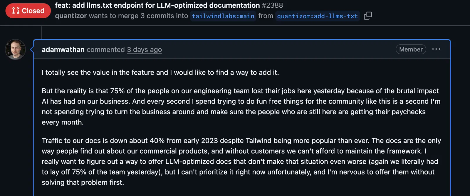 Gebloggt: Das drohende Ende von Open-Source-Projekten durch LLMs am Beispiel von Tailwind