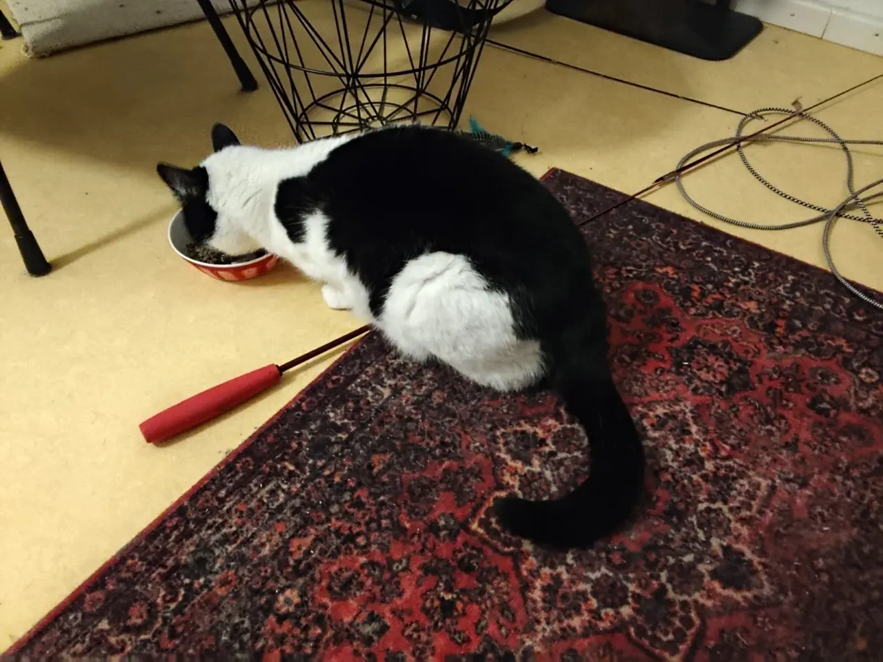 For #Caturday, here is a sad shrimp. (He fell off the bed and sprained his knee.) #CatsOfMastodon