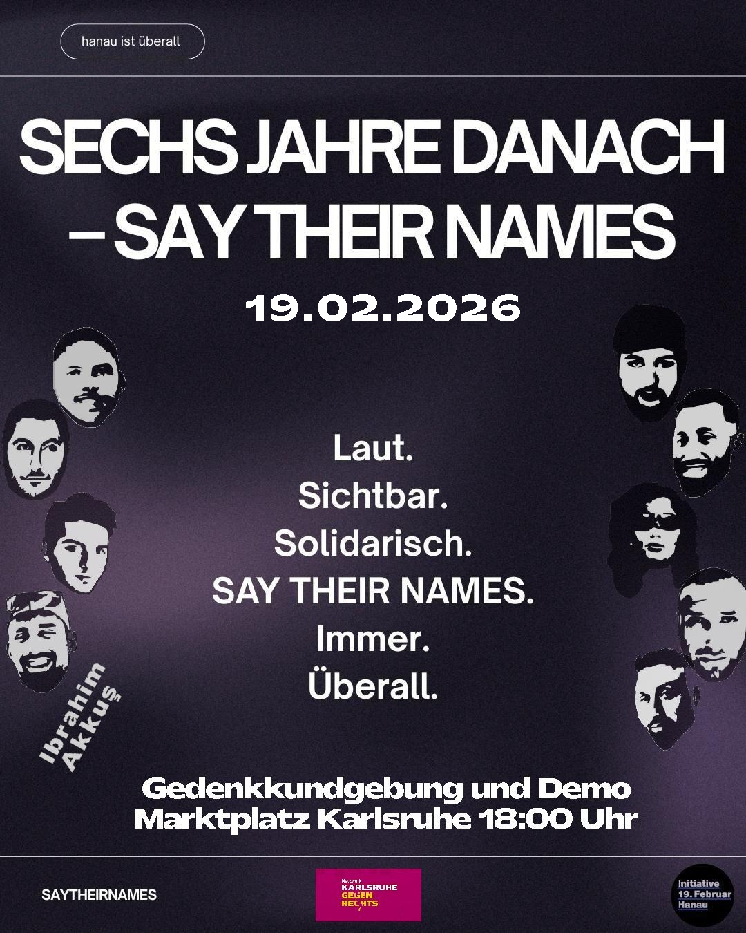 - 19. Februar, 18:00 Uhr, Karlsruhe Marktplatz: Gedenkveranstaltung für die Opfer des Attentats von #Hanau